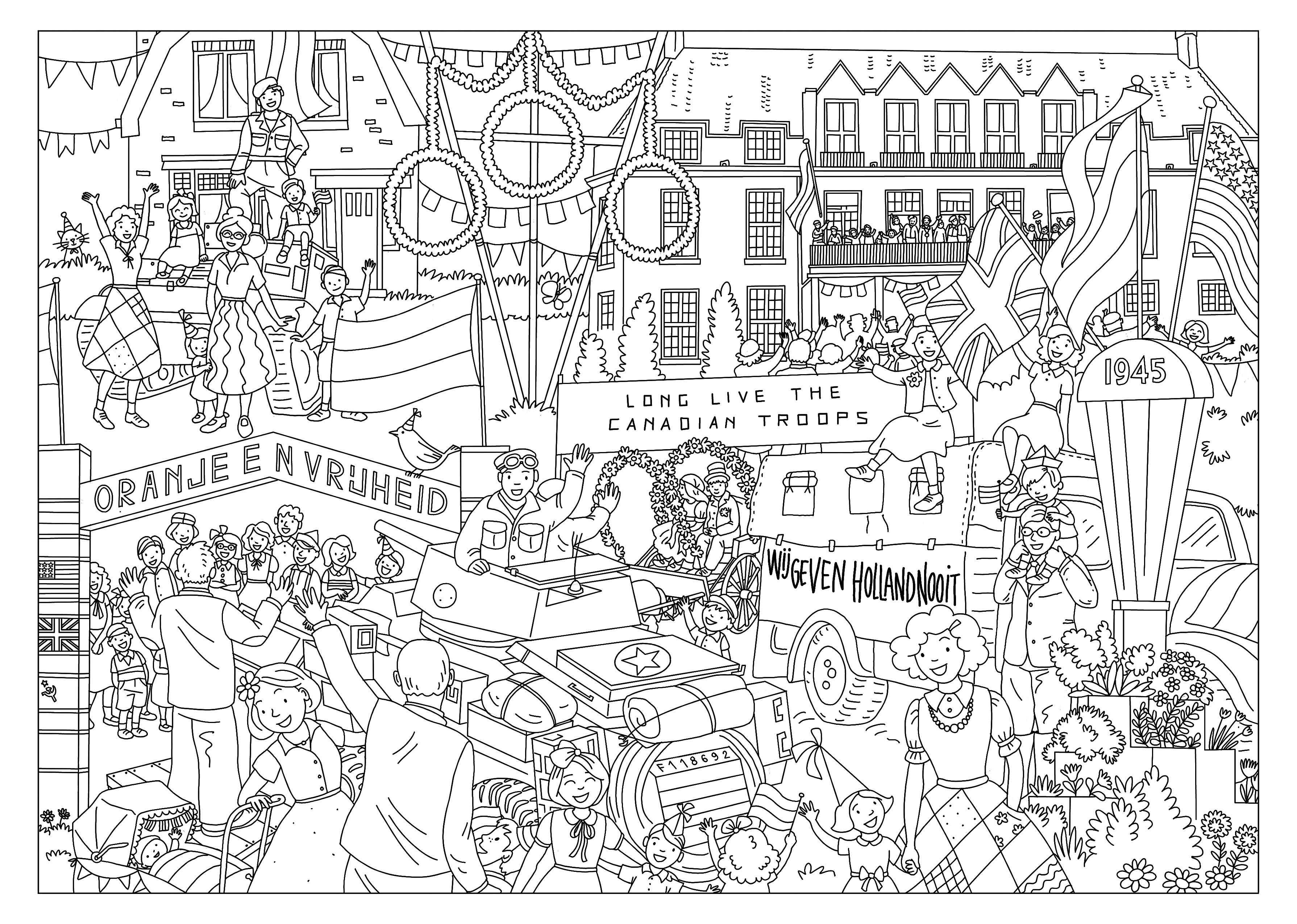 Speciaal voor 80 jaar Vrijheid hebben we een kleurplaat ontworpen die is gebaseerd op verschillende foto’s uit de collectie van het Regionaal Archief RHCVV. Vanaf maandag 28 april kun je bij het Regionaal Archief RHCVV deze bevrijdingskleurplaat ophalen. Lever je kleurplaat in en maak kans op een leuke prijs!