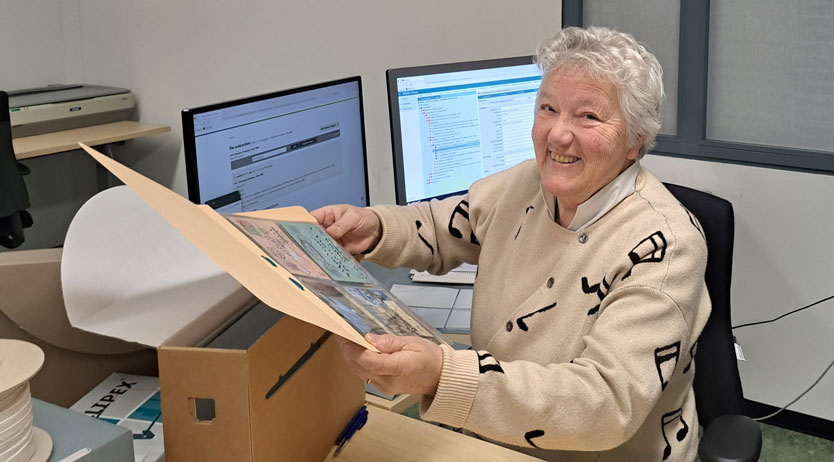 Ik vind het hartstikke leuk om te doen. Wilma de Kruijter (oud-medewerkster Dienstverlening bij het RHCVV en nu óók vrijwilliger) helpt mij bij het ordenen en beschrijven van de stukken. Elke donderdagmiddag gaan wij samen door alle fotoalbums, brieven, boekjes, brochures heen. We zorgen ervoor dat alle nietjes, paperclips en ringbanden verwijderd worden (metaal kan roesten en dat is niet goed voor de documenten), om vervolgens het stuk te beschrijven. Dit brengt natuurlijk ook veel leuke herinneringen naar boven. Dat maakt dat het een gezellige boel.